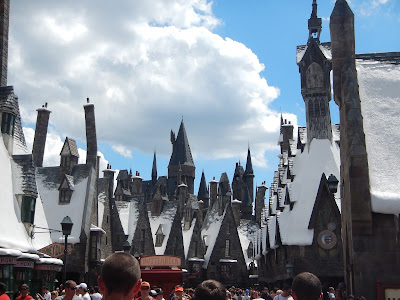 Desembarcando, já avistamos ao longo as chaminés das já conhecidas casinhas de Hogsmeade e finalmente Hogwards!