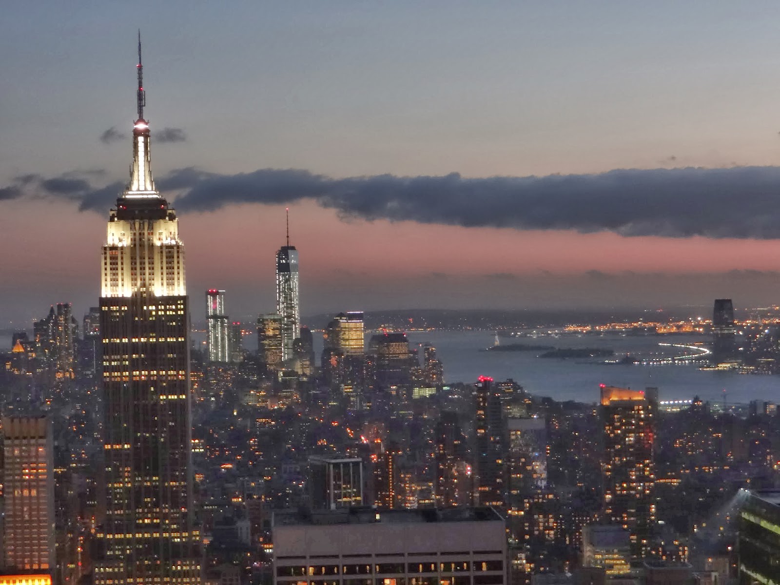 Foto tirada do “Top of the Rock” o observatório do Rockfeller Center com vista para o Empire e ao fundo da imagem é possível observar o “One World Trade Center ” o atual prédio mais alto de NY