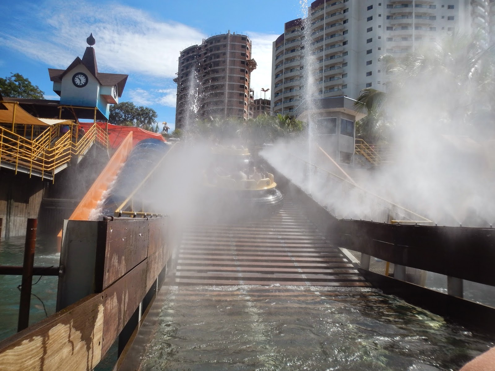 Pena que uma hora acaba… a volta passa por diferentes pontos, nem é possível ver outra bóia indo ou vindo mas o trajeto não é tão grande quanto gostaríamos quando estamos brincando, não é?! A imagem da direita acima foi tirada de fora da atração e apresenta um trecho por onde passa as bóias e a da esquerda é o final da “brincadeira”, acabando o passeio. A foto foi tirada de dentro da atração (câmera a prova d’agua em pessoal, pois como disse, você irá se molhar).